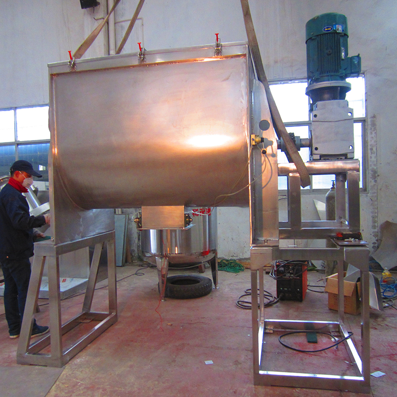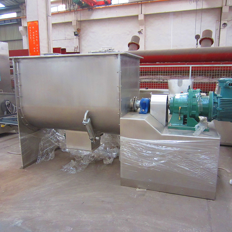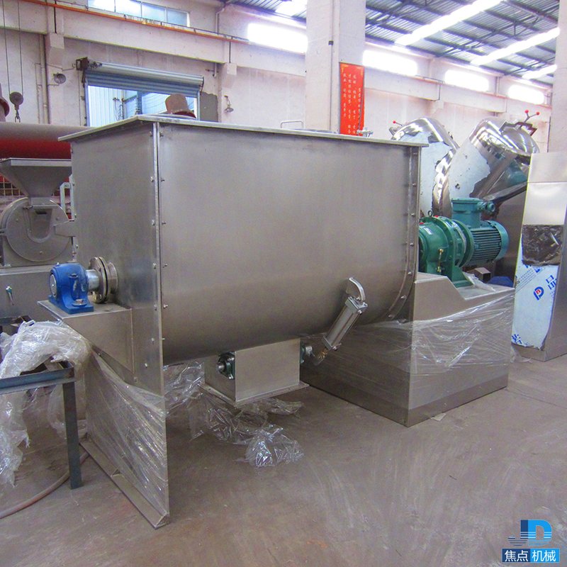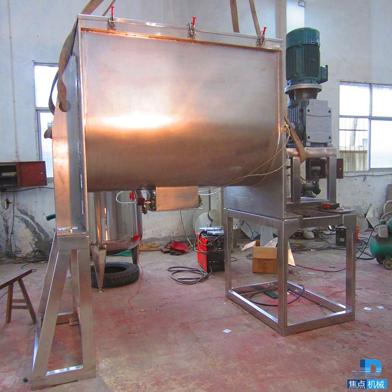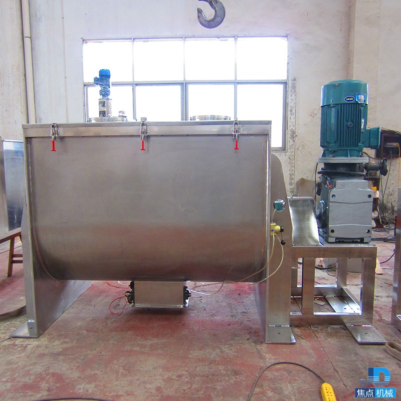 該機型由容器、螺旋攪拌葉片和傳動部件組成:螺旋葉片一般做成雙層或三層,外層螺旋將物料從兩側(cè)向中央?yún)R集,內(nèi)層螺旋將物料從中央兩側(cè)輸送,形成對流混合。