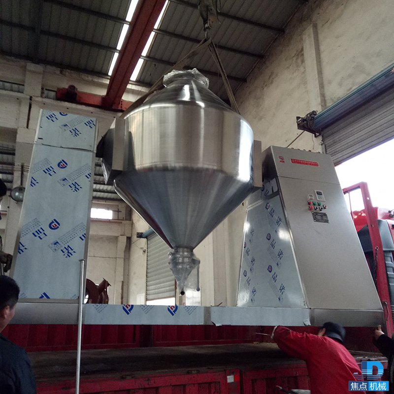 1、本設(shè)備采用結(jié)構(gòu)新穎的錐形筒體,較為一般混合效果好。